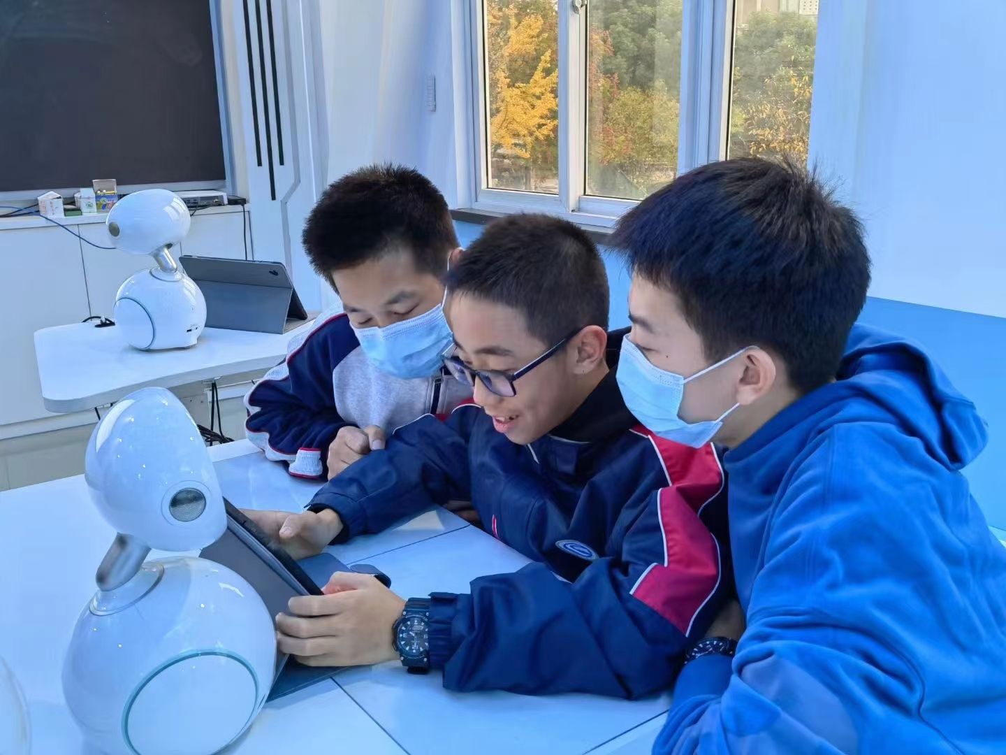 具备了教学空间,人工智能课程自然也要立马跟上。基础普及、兴趣提升加社团活动,形成了学校的常态化教学应用模式。“前年12月,学校开始筹建省级标准化人工智能实验室,在学校原有的创新教育技术的基础上,引入央馆的人工智能课程,打造契合我校学生认知水平的人工智能课程。”高桥初中副校长孙剑介绍道,目前,学校面向七年级学生开展人工智能普及课。同时,在七八年级各设了6个兴趣班,每周学习一次人工智能课程,课时90分钟,并结合人工智能社团进行项目化深度学习。